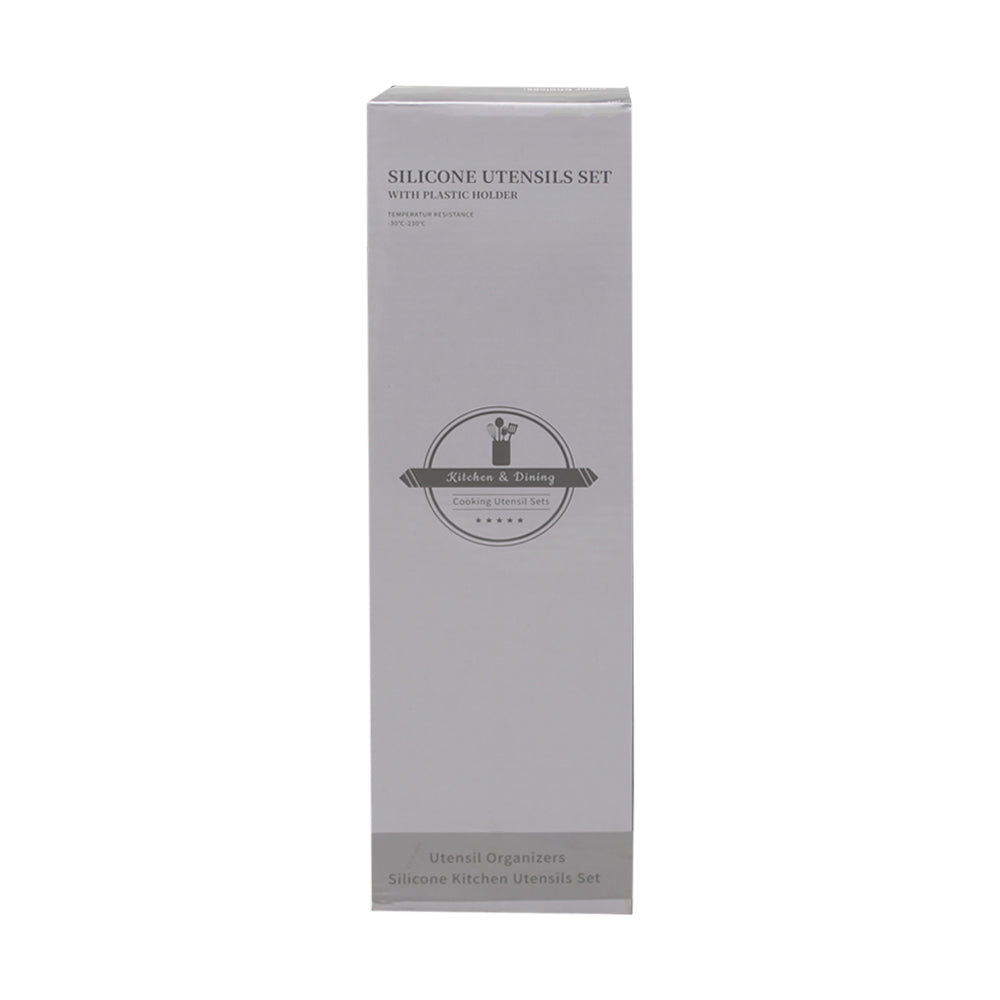 12-Piece Silicone Cooking Utensil Set With Wooden Handle And Holder (Light Grey).