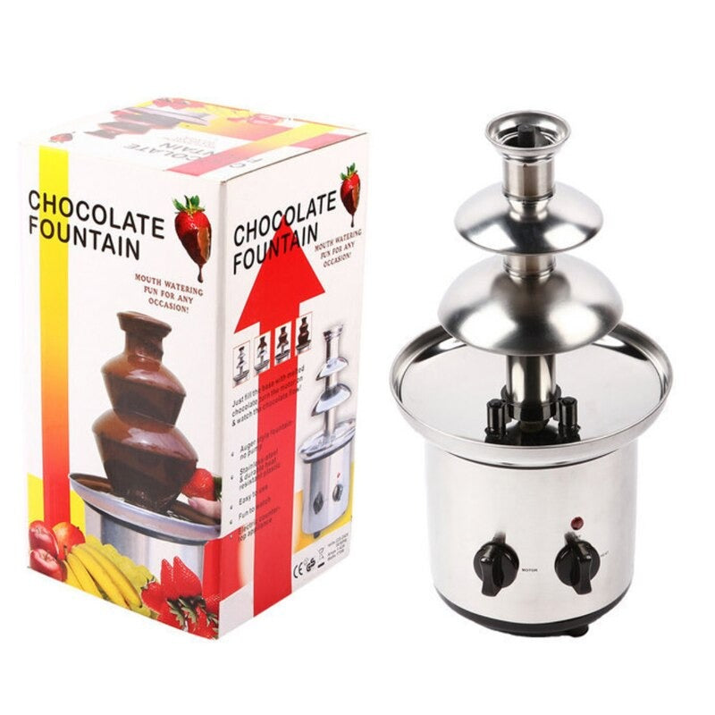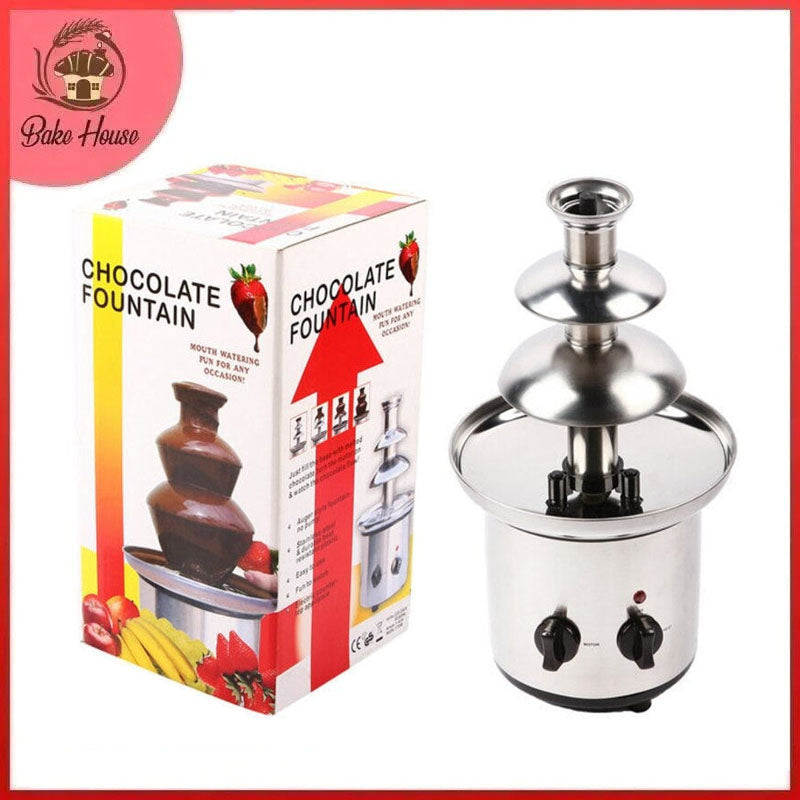 The 3-Tier Chocolate Fountain Stainless Steel is a stylish and functional centerpiece for parties, events, and gatherings. Made from durable stainless steel, it features three cascading tiers of flowing chocolate, creating a visually stunning display. Perfect for dipping fruits, marshmallows, or other treats, this chocolate fountain ensures an enjoyable and indulgent experience for guests. Its easy-to-use design and efficient heating element make it a must-have for any chocolate lover.