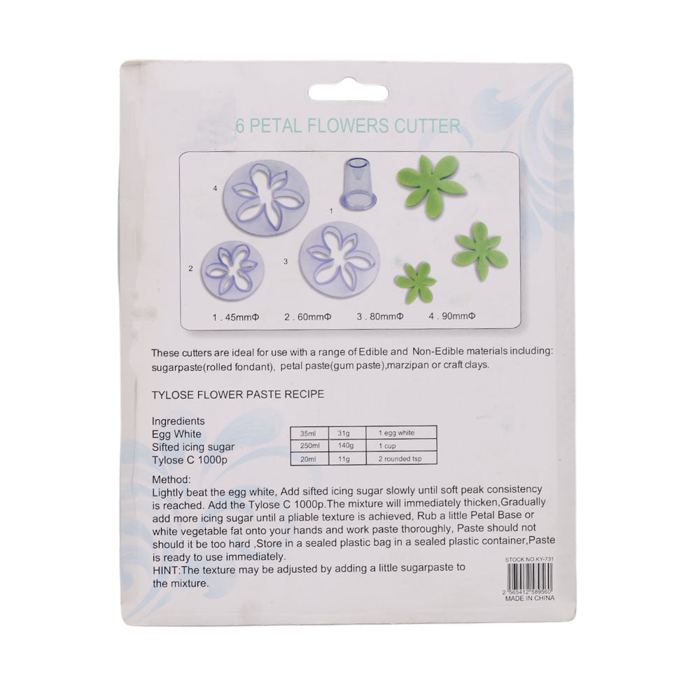 6 Petal Flower Plastic Cutter 4Pcs Set