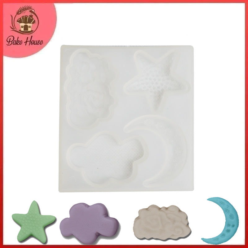 Moon, Star & Clouds Sky Theme Silicone Fondant & Chocolate Mold 4 Cavity