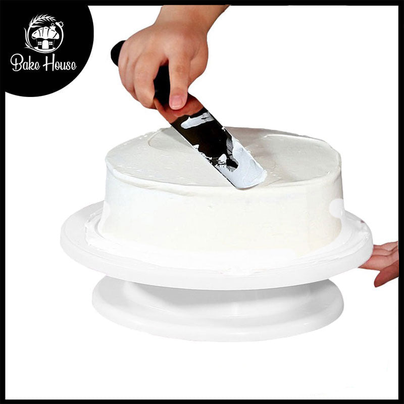 Upgrade your cake decorating with our 28cm Round Plastic Cake Rotating Turn table. This essential tool makes frosting and decorating your cakes a breeze. Whether you're a professional baker or a home enthusiast, this turntable ensures smooth and precise cake decoration. Enjoy the convenience of spinning your cake for even and beautiful designs.