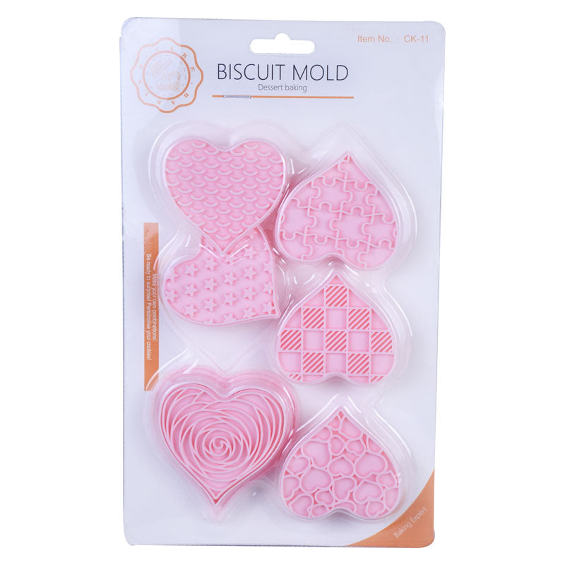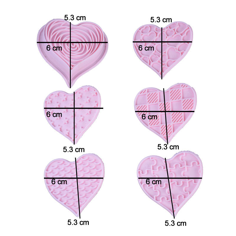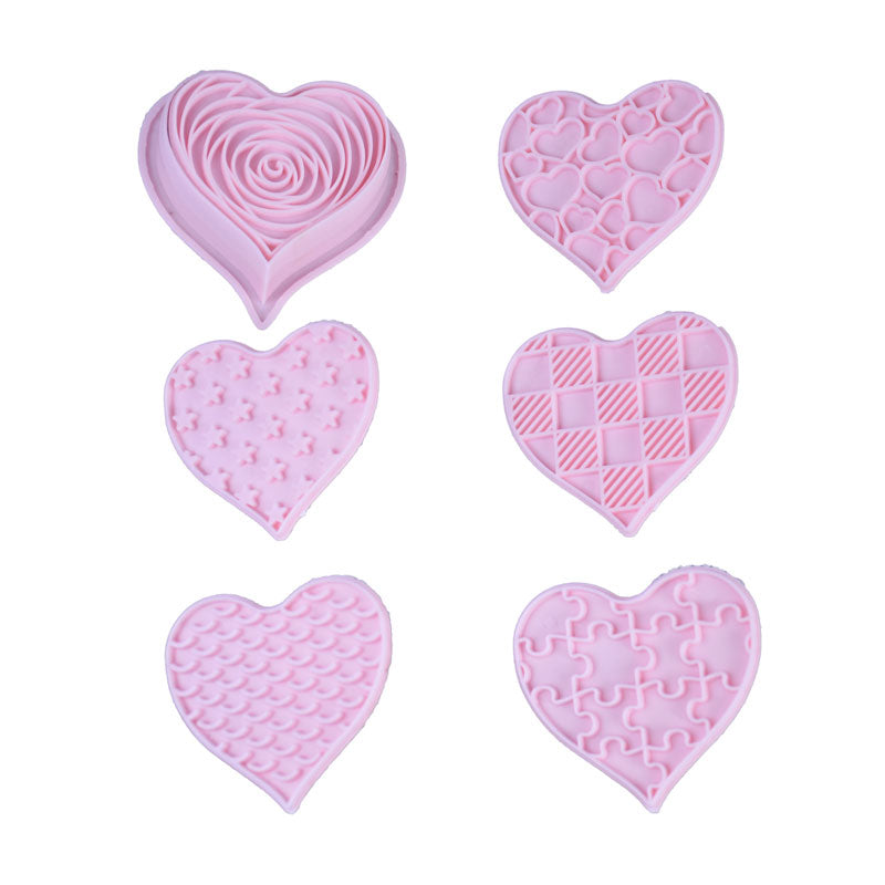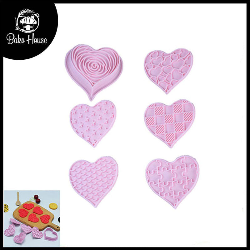 Heart Theme Cookie And Fondant Plastic Cutters With Stamps 6 Pcs Set