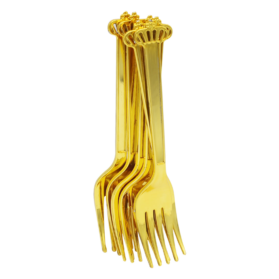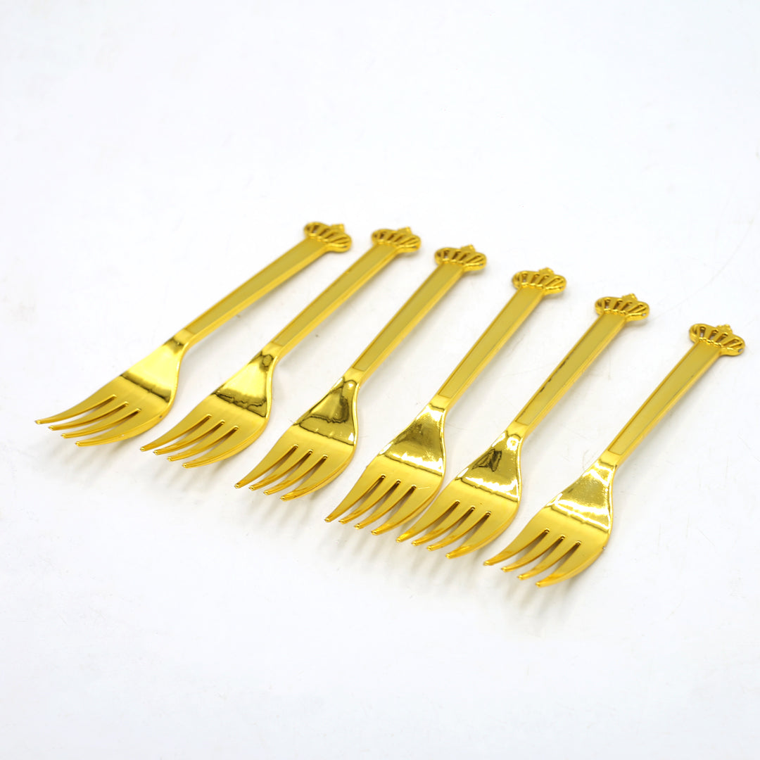 Disposable Crown Fork and Spoon 6Pcs Set is a stylish cutlery set perfect for parties and special occasions. Featuring an elegant crown design with a silver finish, these disposable utensils add a touch of class to your table. Ideal for desserts, snacks, and easy cleanup.