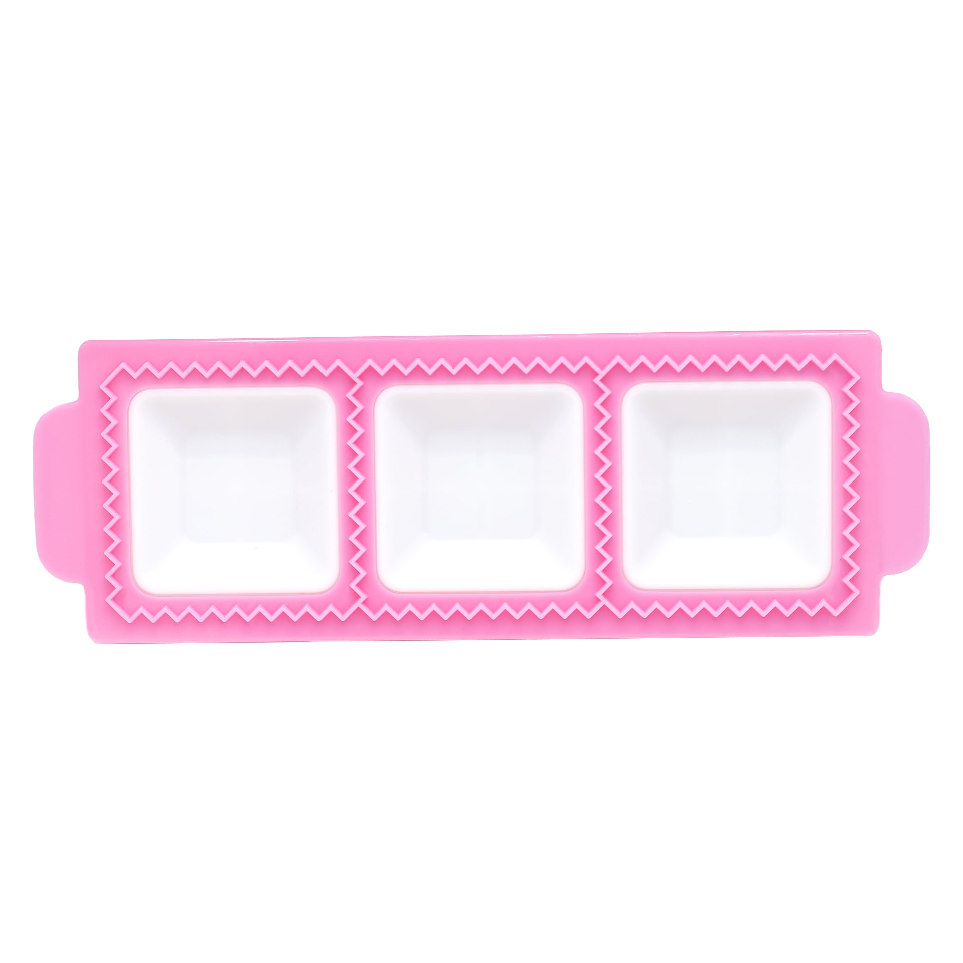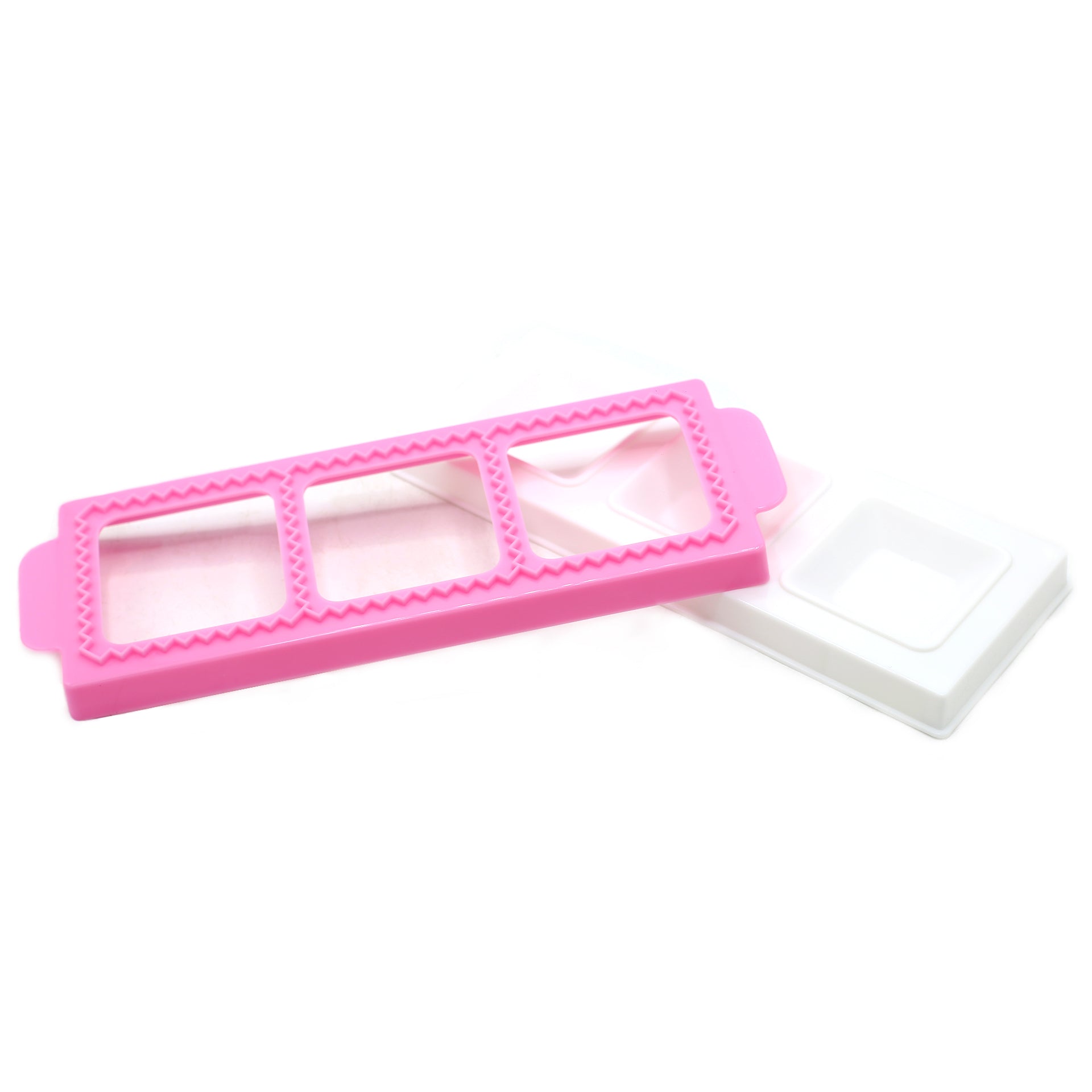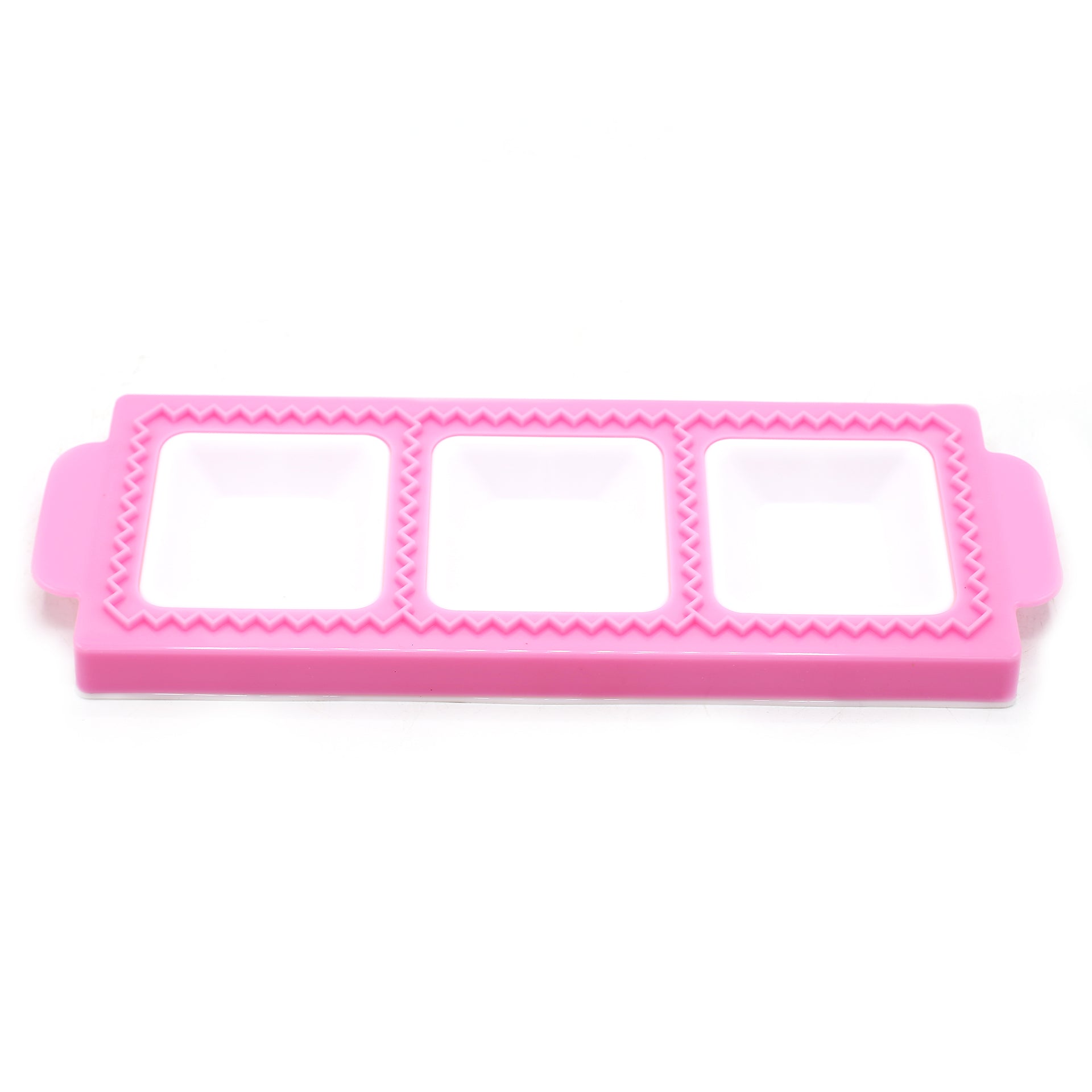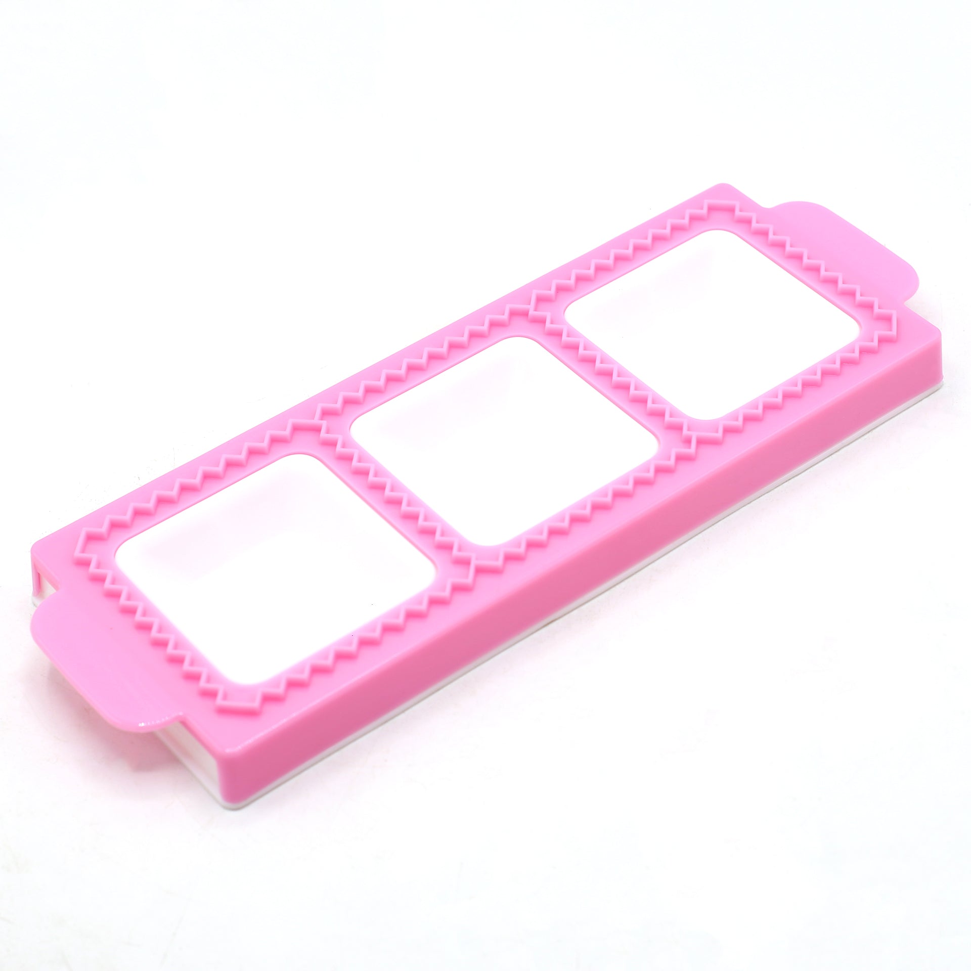 Fliya Square Cutter and Stamp 3 Cavity is a handy baking tool designed to cut and imprint patterns on dough or fondant. With 3 square cavities, it helps create uniform shapes with decorative designs, perfect for cookies, biscuits, or fondant toppers. Easy to use and clean, ideal for creative baking.