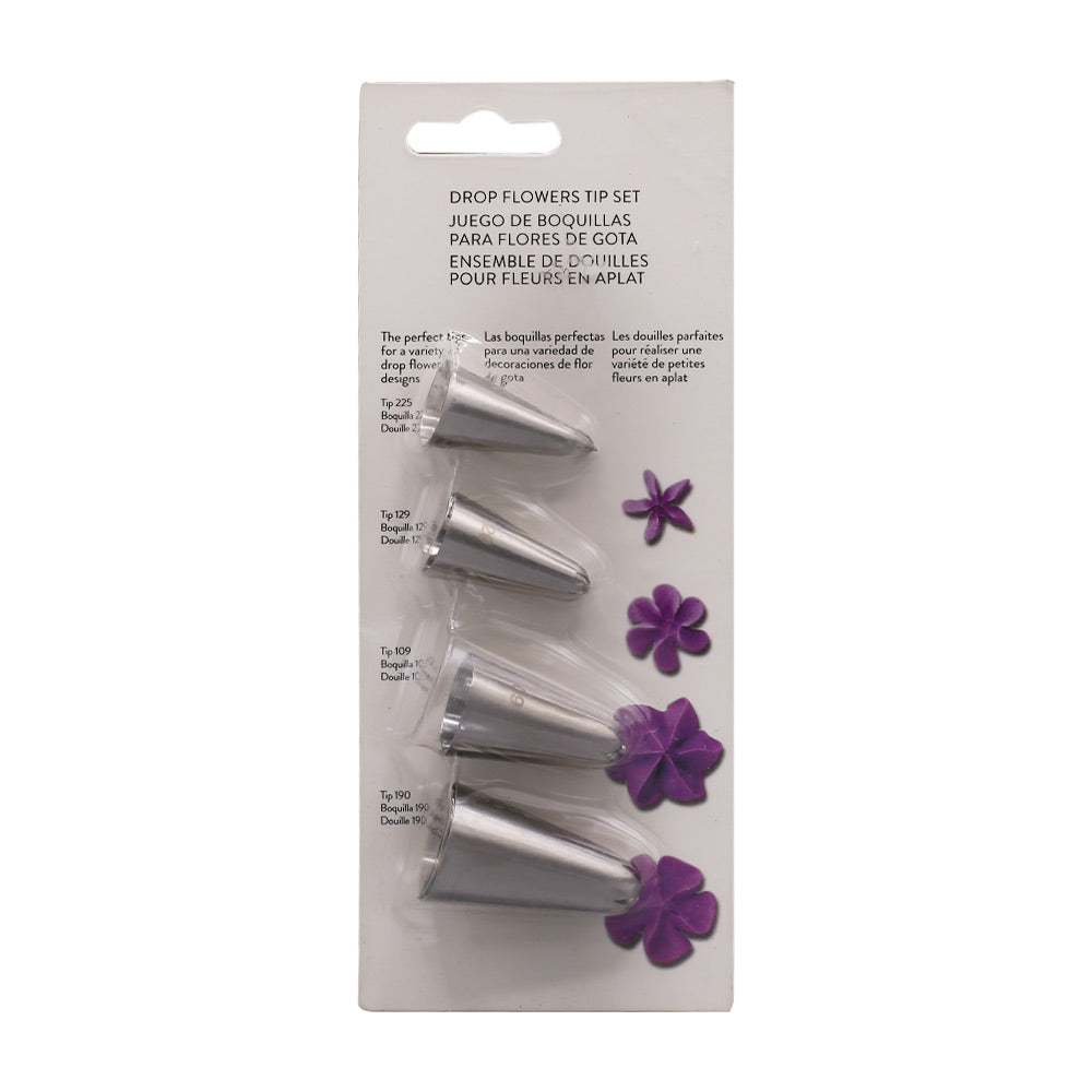 The Flower Icing Nozzle 4-Piece Set is perfect for effortlessly creating beautiful floral designs on cakes, cupcakes, and pastries. Made from high-quality stainless steel, these durable and rust-resistant nozzles allow for precise piping of buttercream, royal icing, and more. With a variety of floral patterns, this set is ideal for both beginners and professional bakers looking to add elegant decorations to their baked creations. Easy to use and clean, it's a must-have for any cake decorating toolkit.