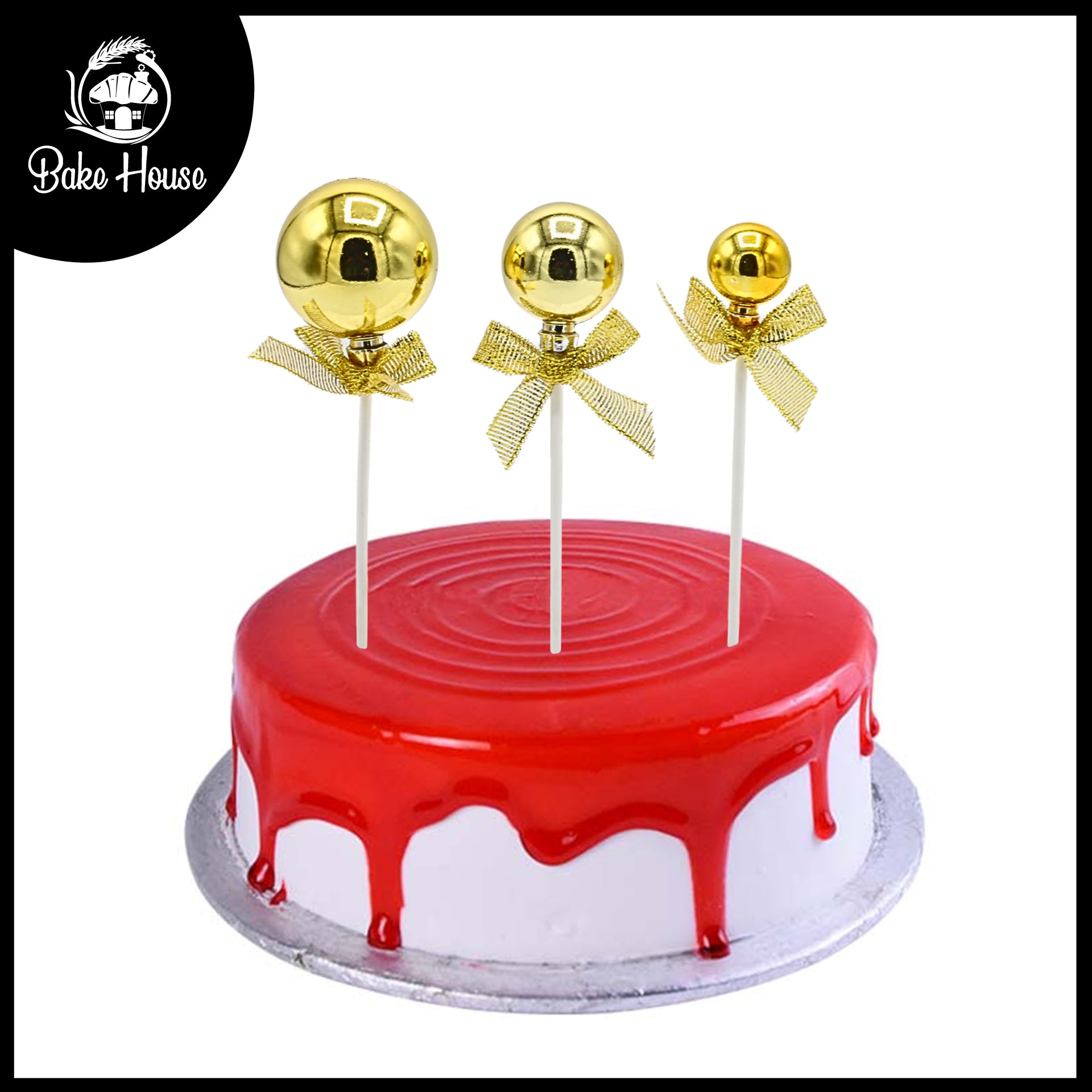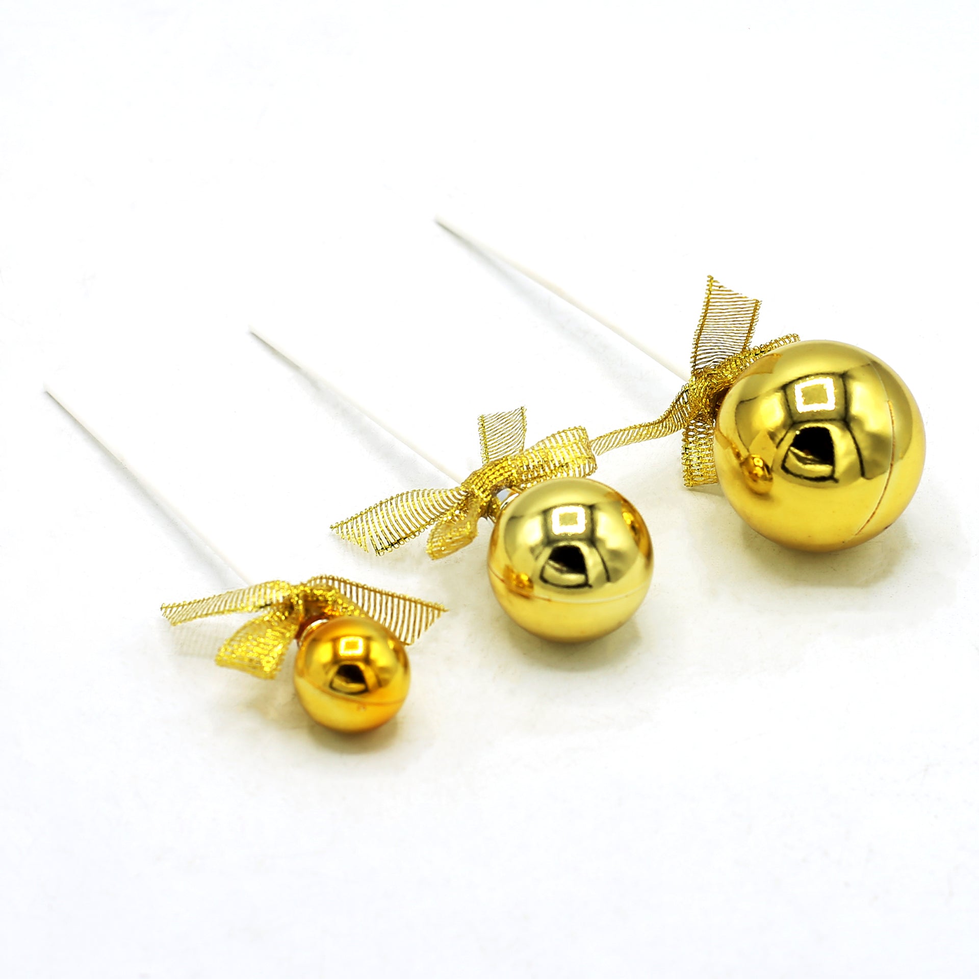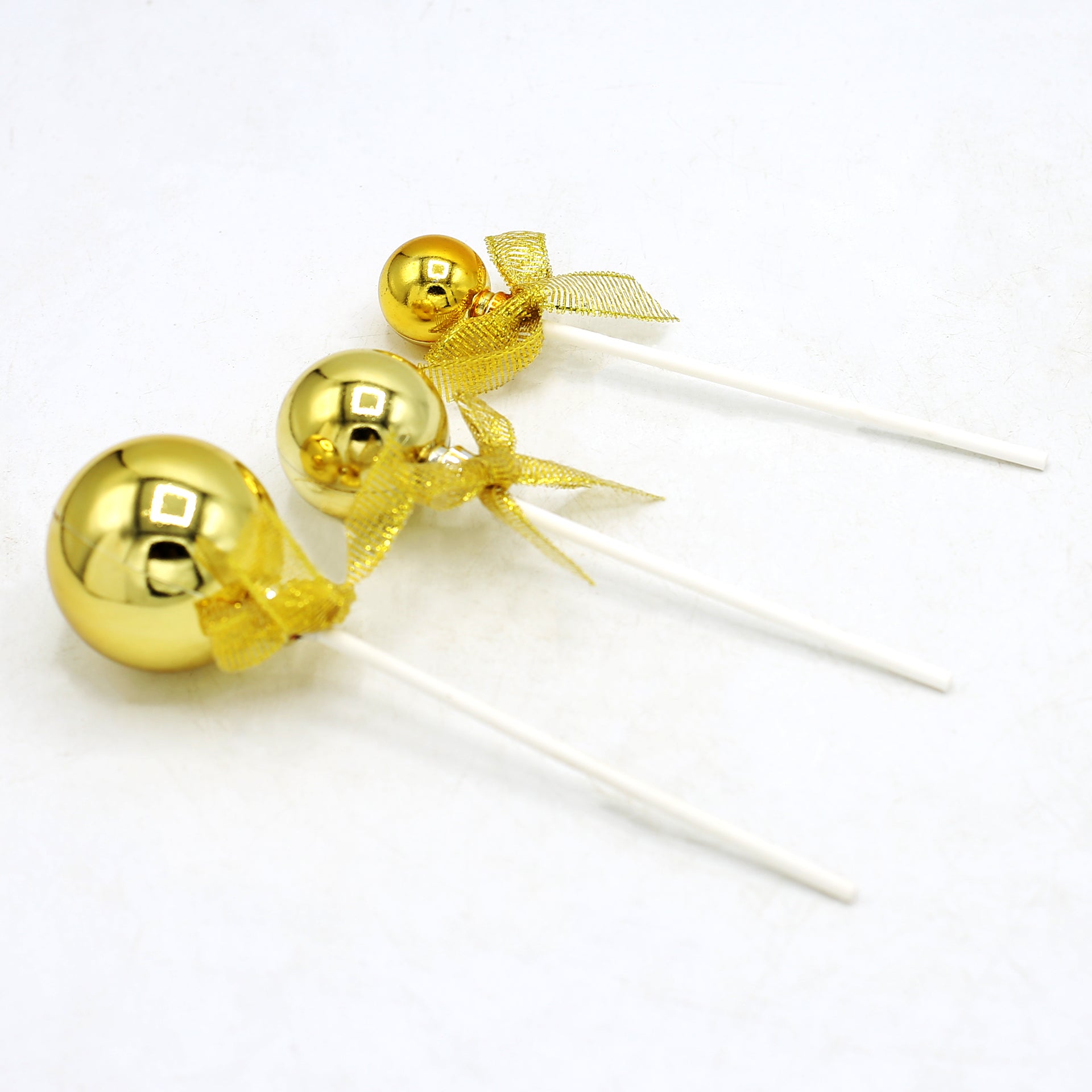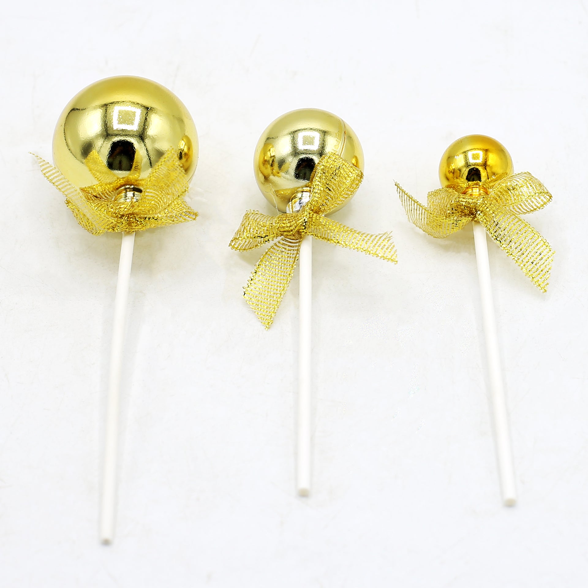 This golden ball cake topper set includes 3 pieces, perfect for adding a touch of elegance and shine to cakes and desserts. With their sleek golden finish, they create a festive and luxurious look for birthdays, weddings, and special occasions. Lightweight and reusable, they make any cake stand out beautifully.