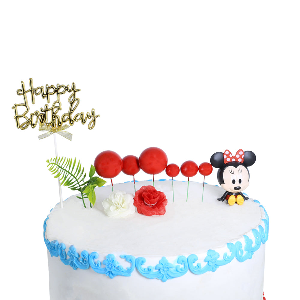 This 12-piece Happy Birthday cake topper set in copper features faux balls, leaves, flowers, and a playful Mickey Mouse design, making it perfect for festive celebrations. Made from durable and high-quality materials, it is easy to place and reuse, adding a stylish and fun touch to your cakes. Ideal for birthdays and special occasions, it creates a memorable and visually stunning centerpiece.
