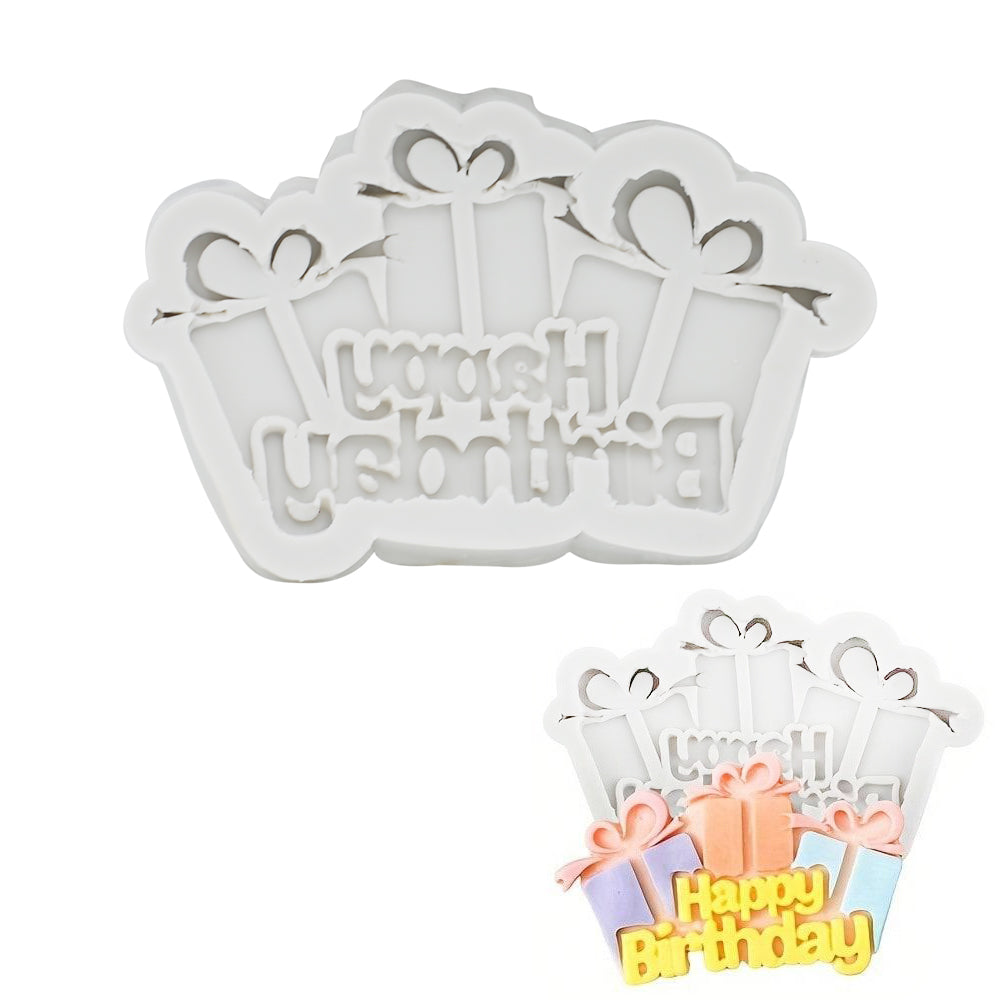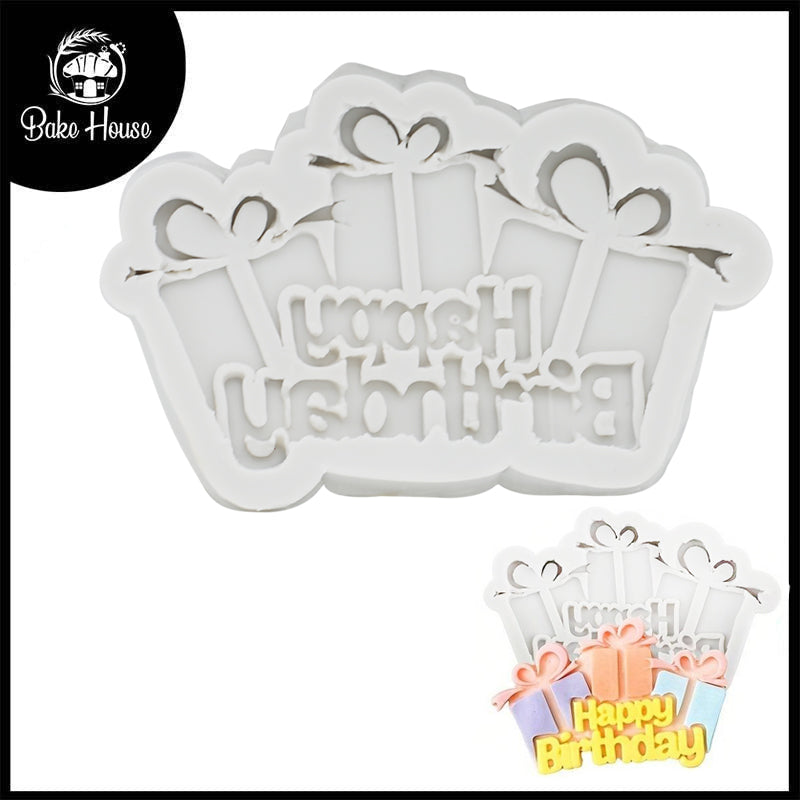 Happy Birthday With Gift Box Silicone Fondant Mold is a fun and festive tool for decorating cakes and desserts. Made from flexible, food-grade silicone, it creates detailed "Happy Birthday" and gift box shapes using fondant, chocolate, or candy. Ideal for birthday cakes and celebrations.