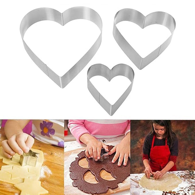 This 3-piece heart cake cutting ring set is perfect for shaping small cakes and desserts with ease. Made from durable material, the rings help create neat, uniform heart designs for special occasions. Ideal for baking, layering, or molding, they add a lovely touch to homemade treats.