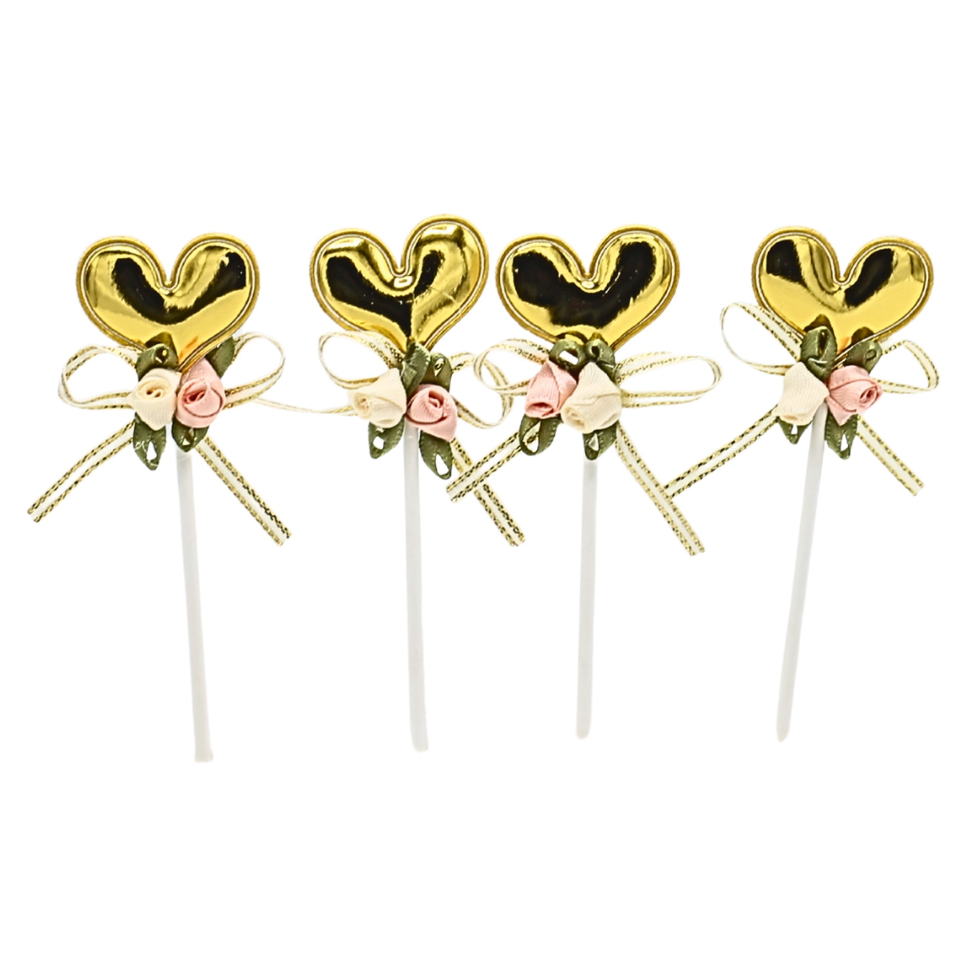 This heart cake topper set includes 4 golden pieces, perfect for adding a romantic and stylish touch to cakes and desserts. With their shiny golden finish, they bring elegance to birthdays, weddings, and special celebrations. Lightweight and reusable, they make any dessert table look more charming and festive.