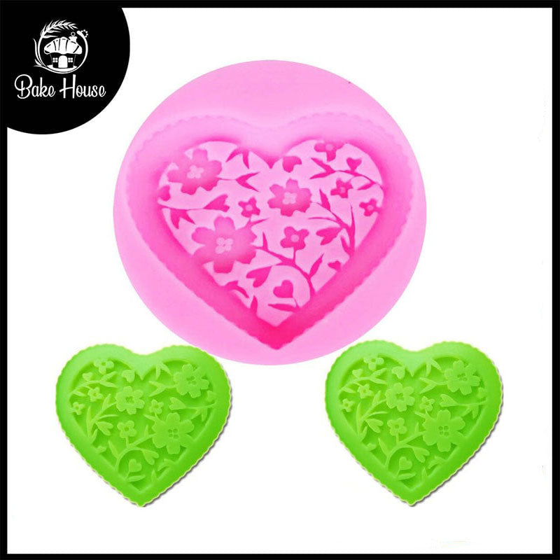 Heart With Flowers Silicone Fondant & Chocolate Mold
