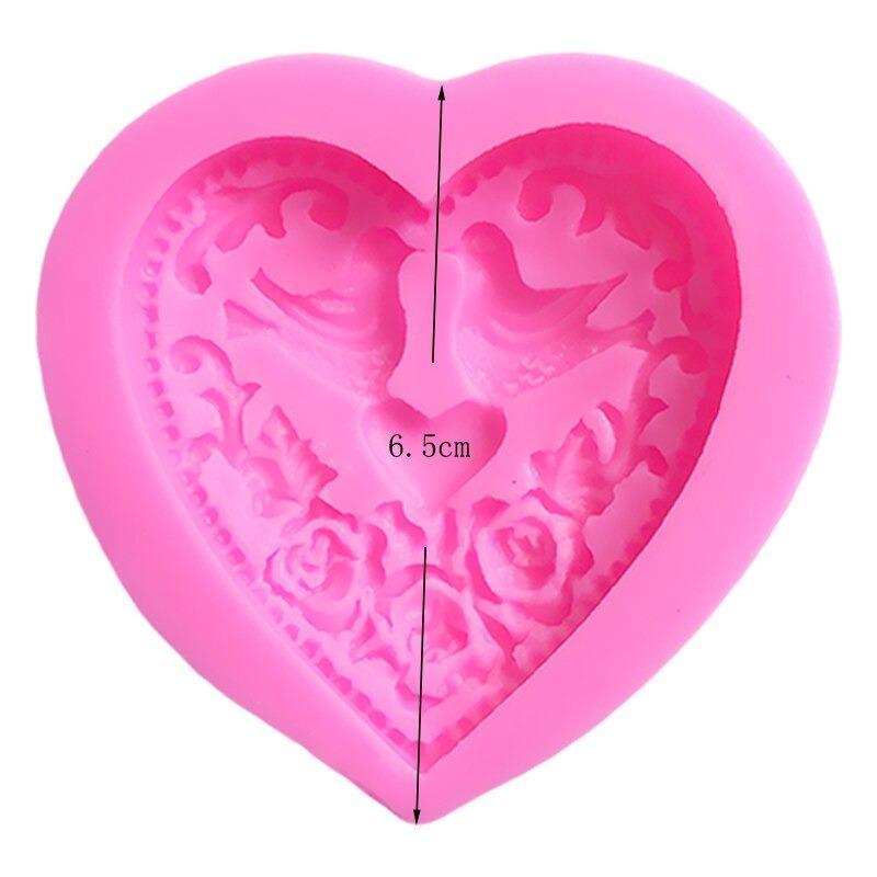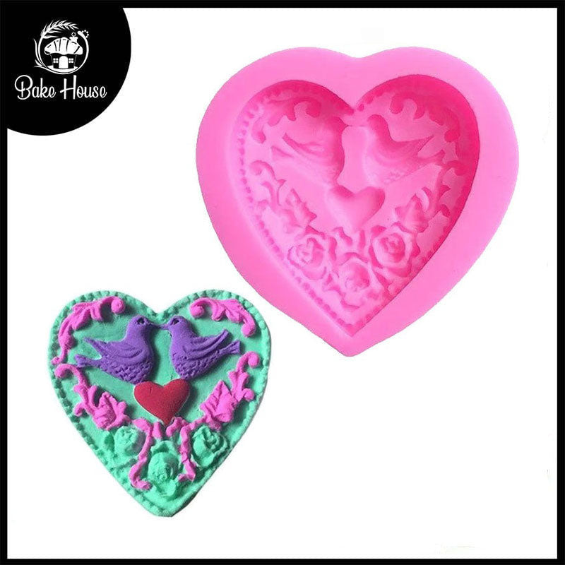 Heart With Rose & Birds Silicone Fondant & Chocolate Mold
