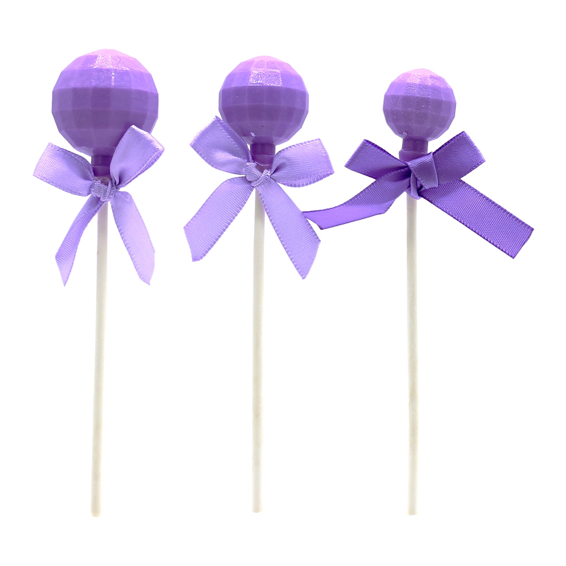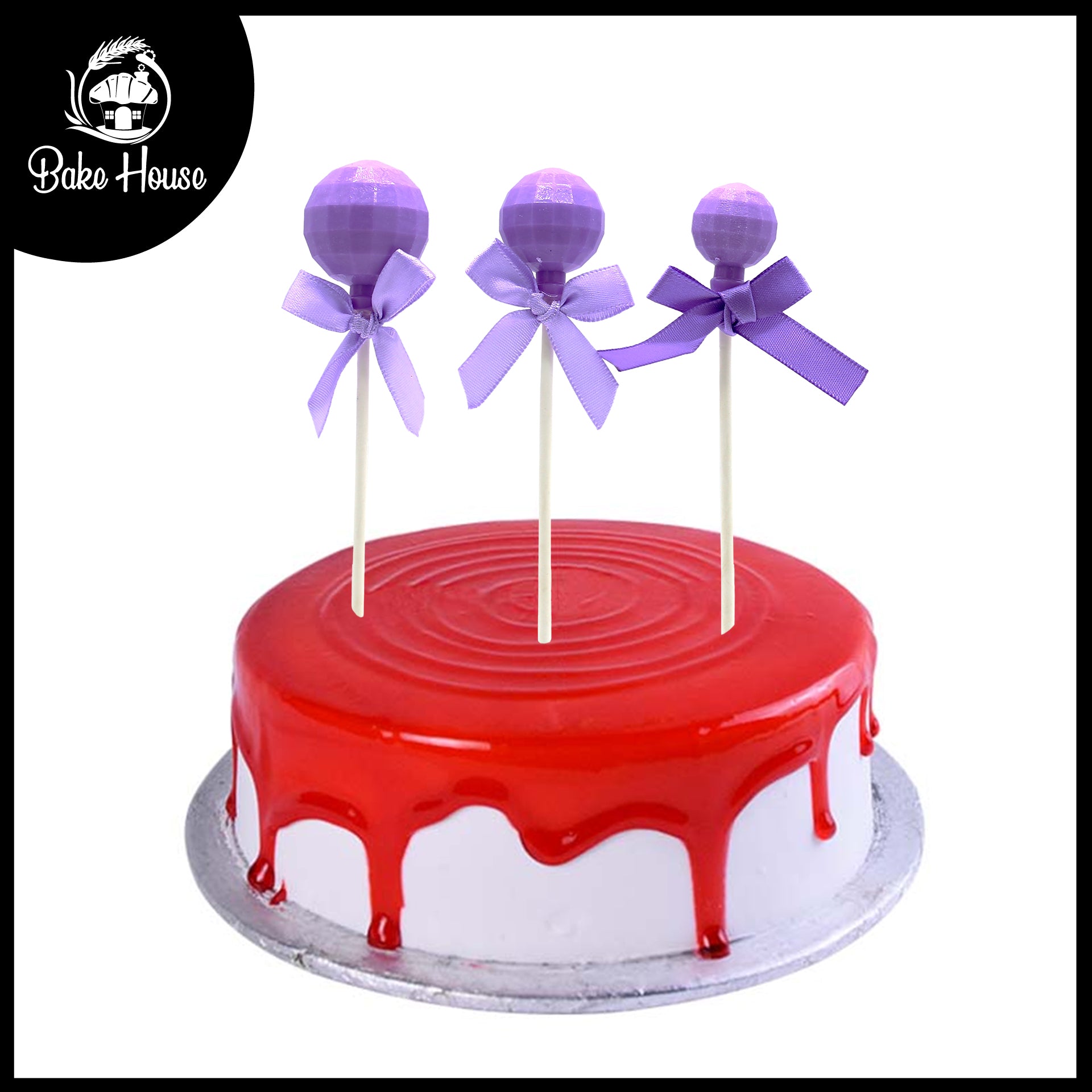 Lollipop Style Cake Toppers Purple 3Pcs Set