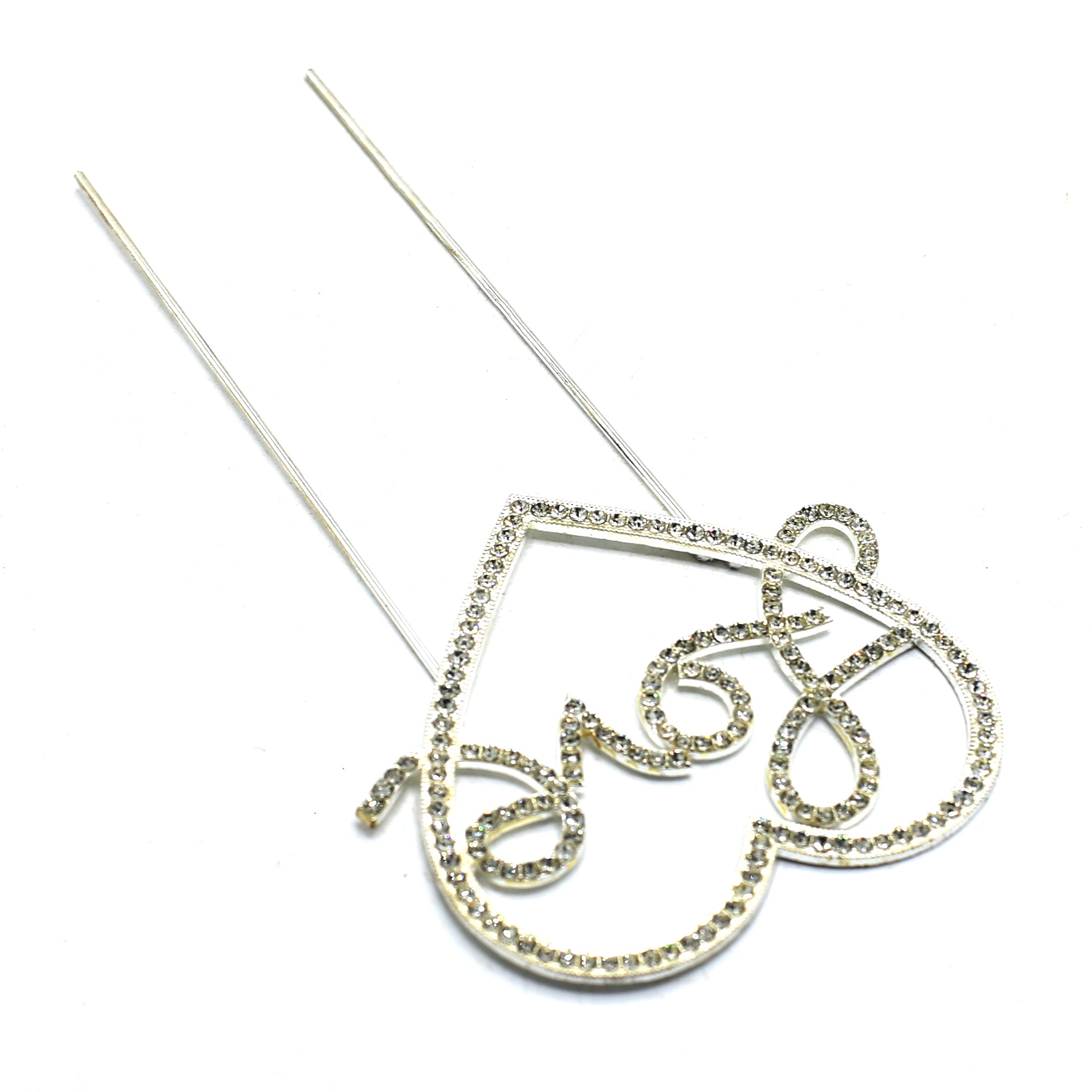 This love with heart cake topper in silver, adorned with silver nuggets, adds a sparkling and romantic touch to cakes. Elegant and eye-catching, it’s perfect for weddings, anniversaries, or special celebrations. Lightweight and easy to place, it enhances the beauty of your cake with charm and sophistication.