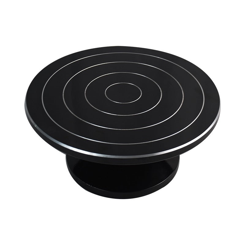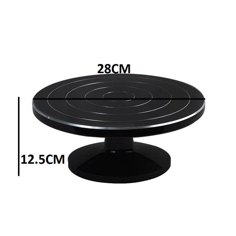 metal cake rotating turn table is perfect addition to any of the baker's toolkit it is constructed of durable metal. it's diameter is 28cm. it'll help you to decorate your cake and it'll easily rotate cake up to 3.8kg.