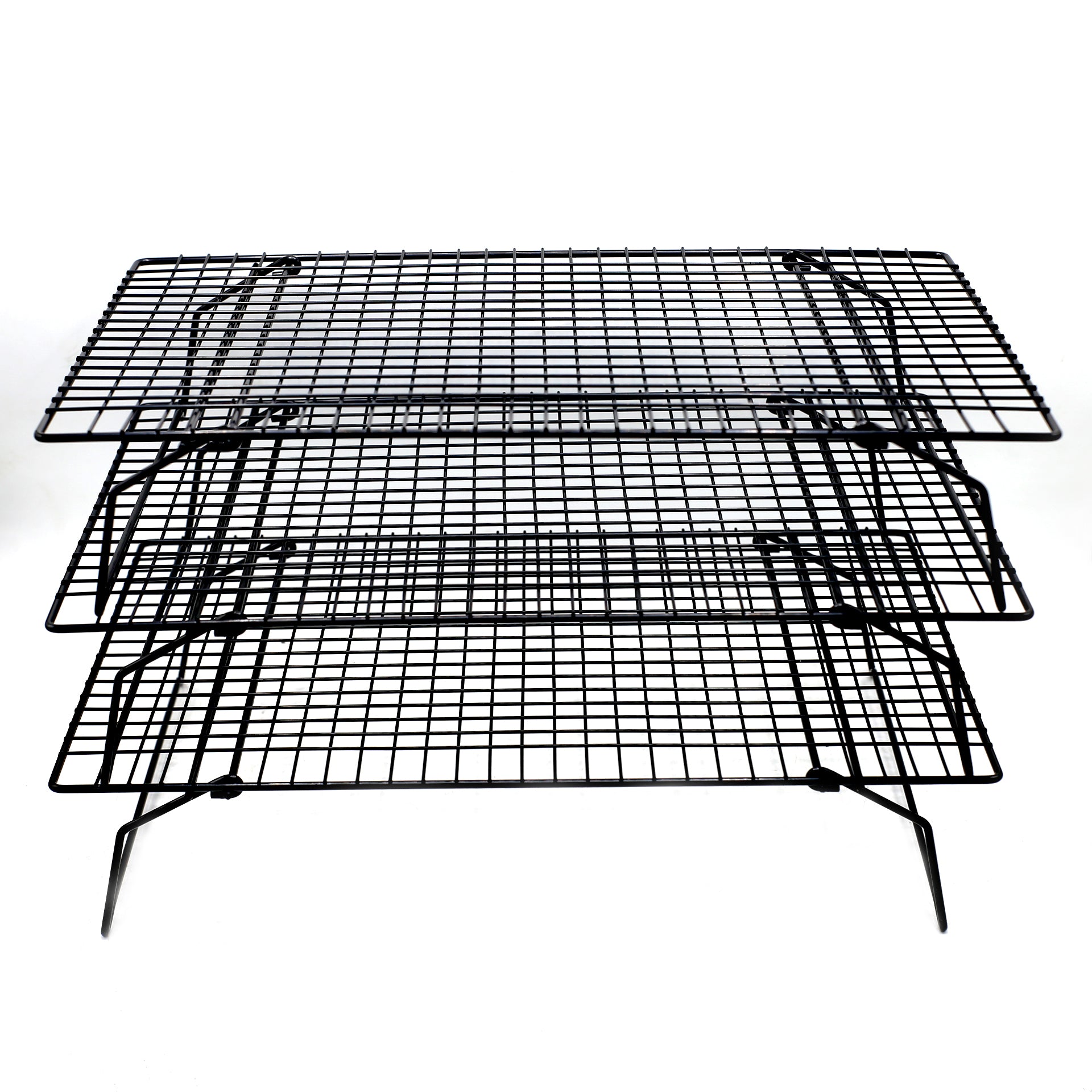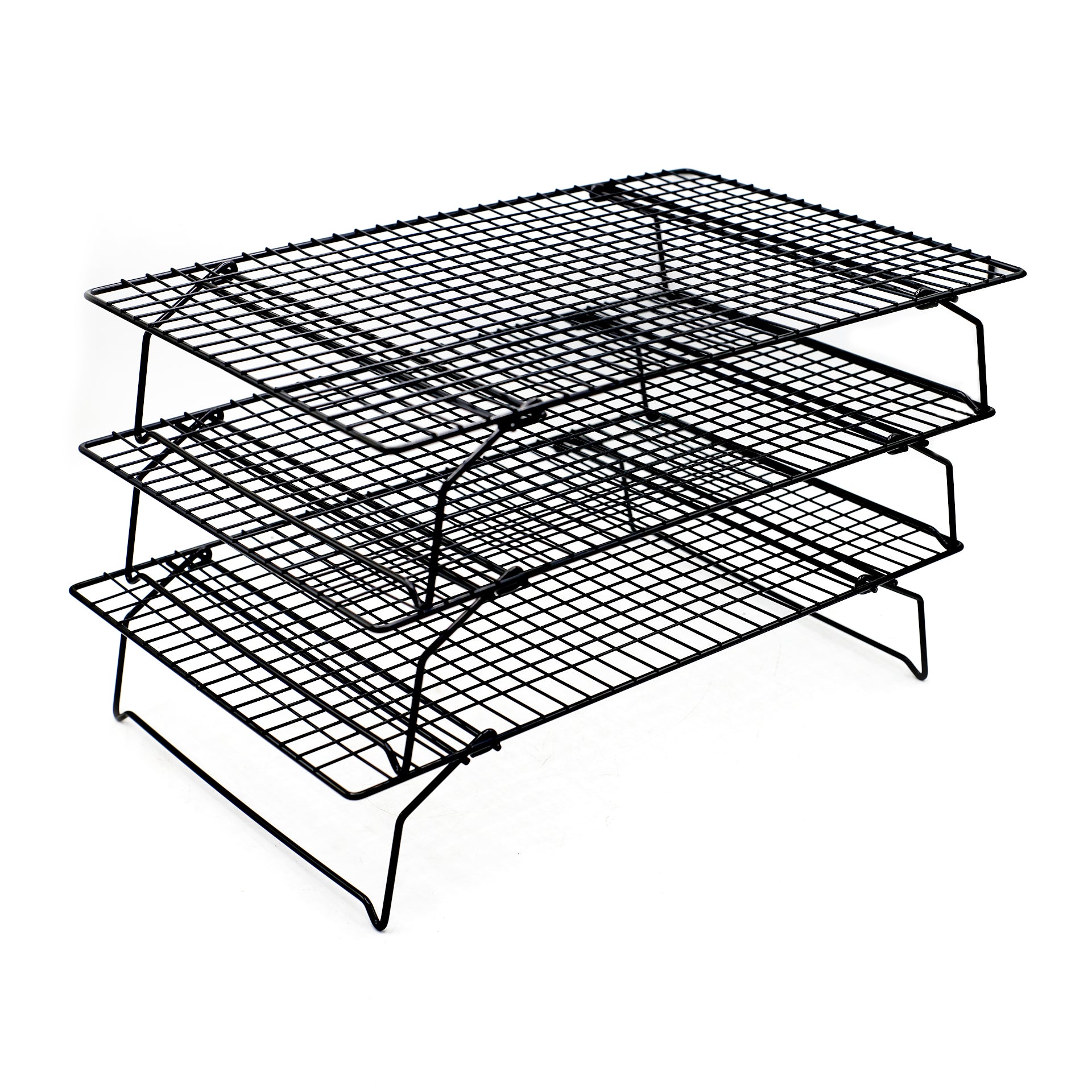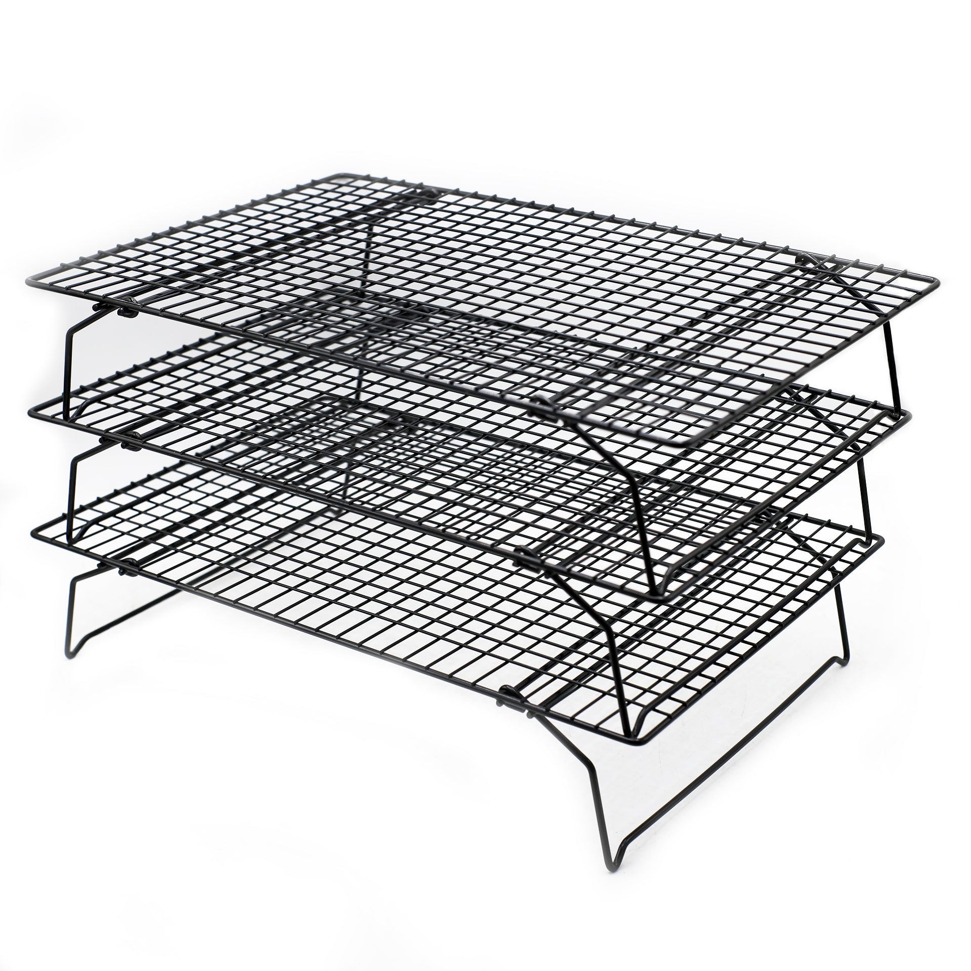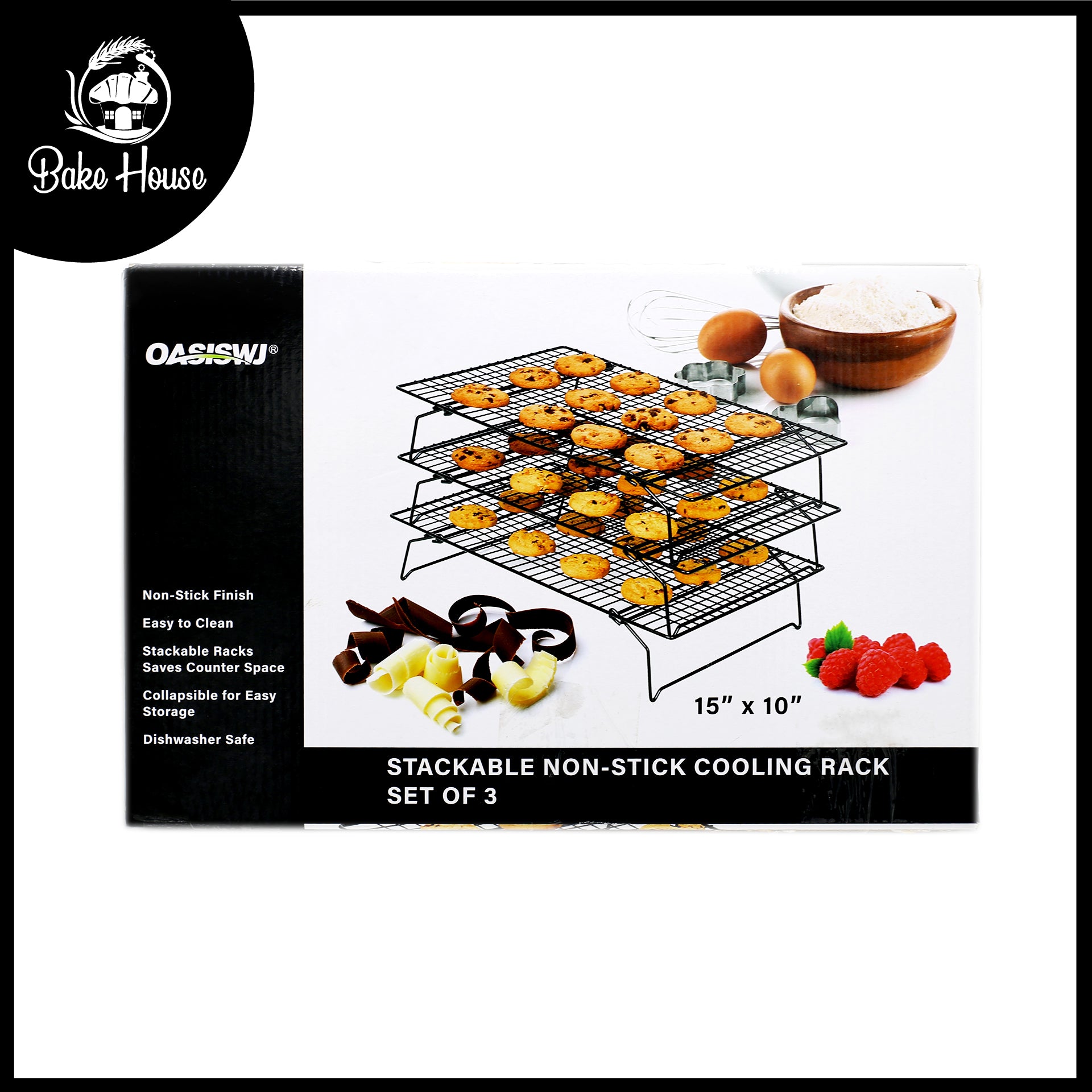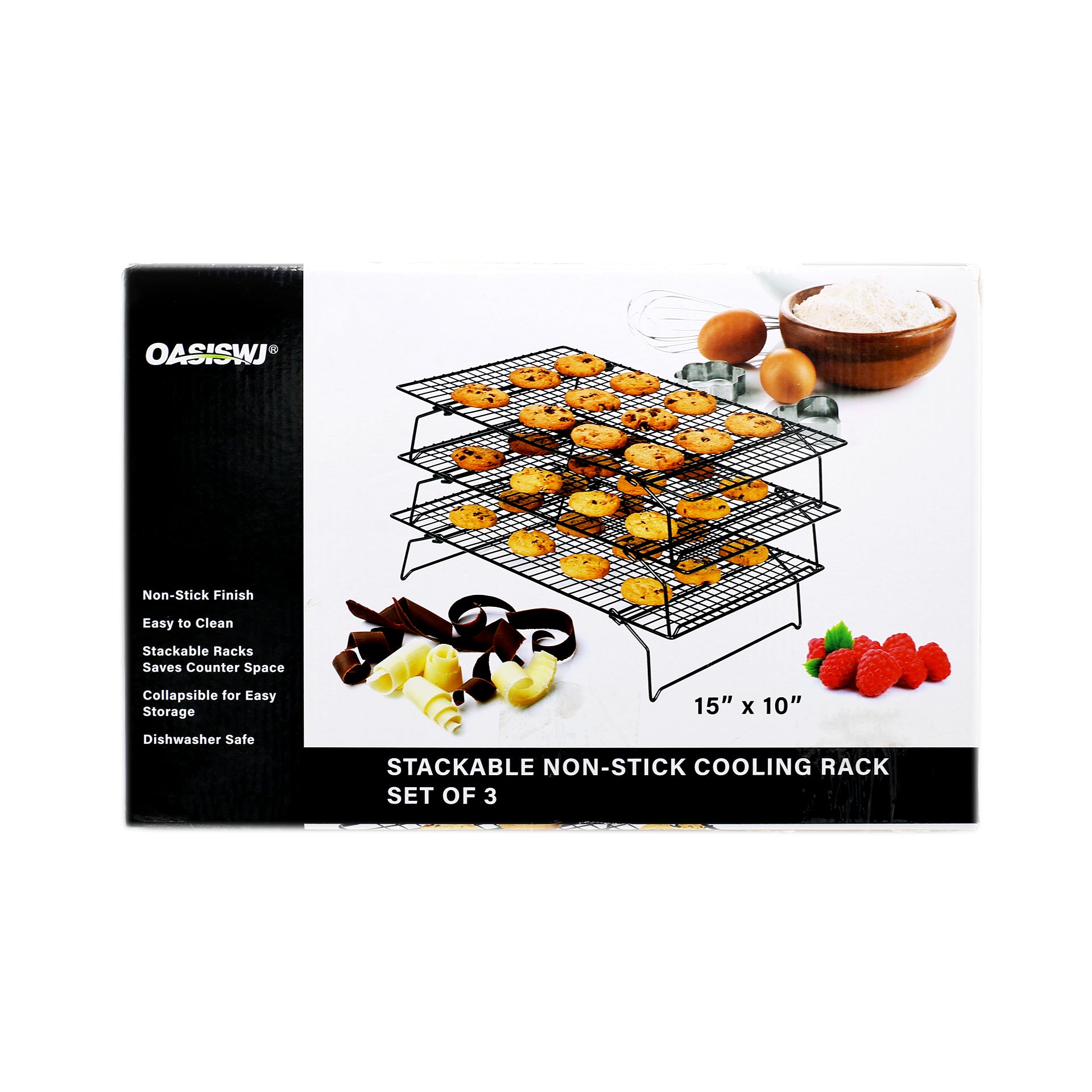 OASISWJ 3-Tier Cooling Rack (15 x 10 inch) is a space-saving kitchen accessory designed for cooling baked goods efficiently. Its three-tier design maximizes airflow around cakes, cookies, and pastries, helping them cool faster and more evenly. Made from sturdy metal, the rack is durable and supports heavy items. Ideal for bakers who need extra cooling space without using too much countertop area.