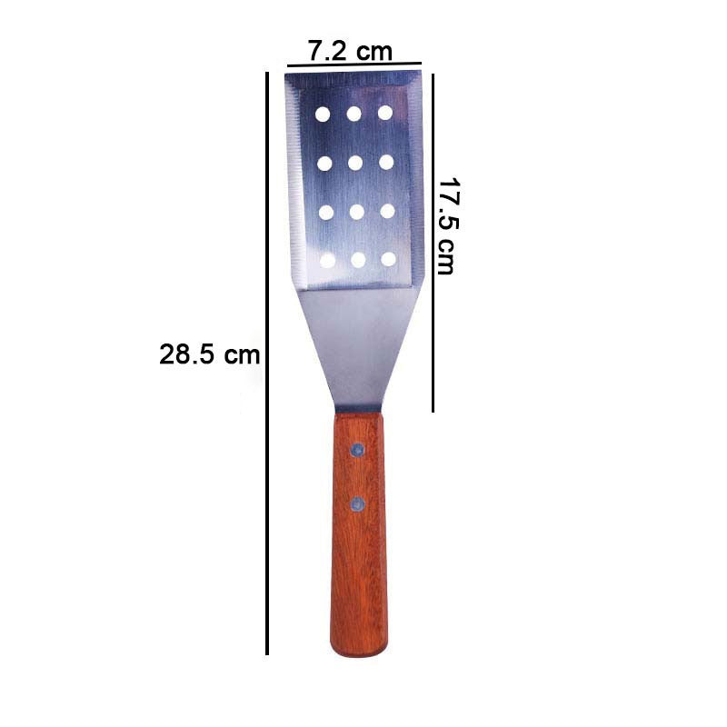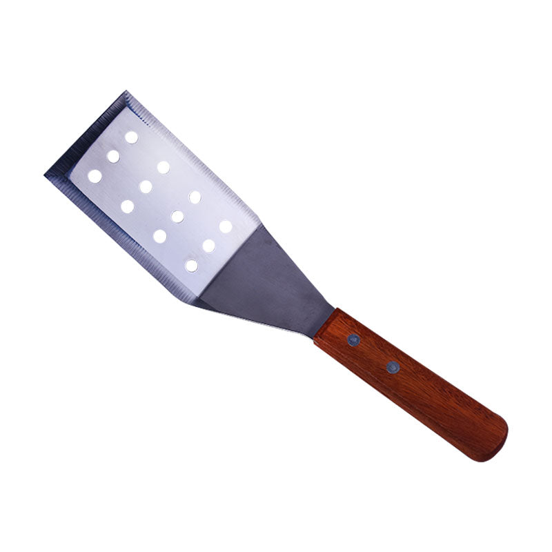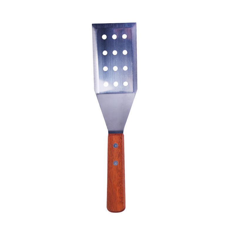 Perforated Griddle Spatula Stainless Steel, Wooden Handle Small