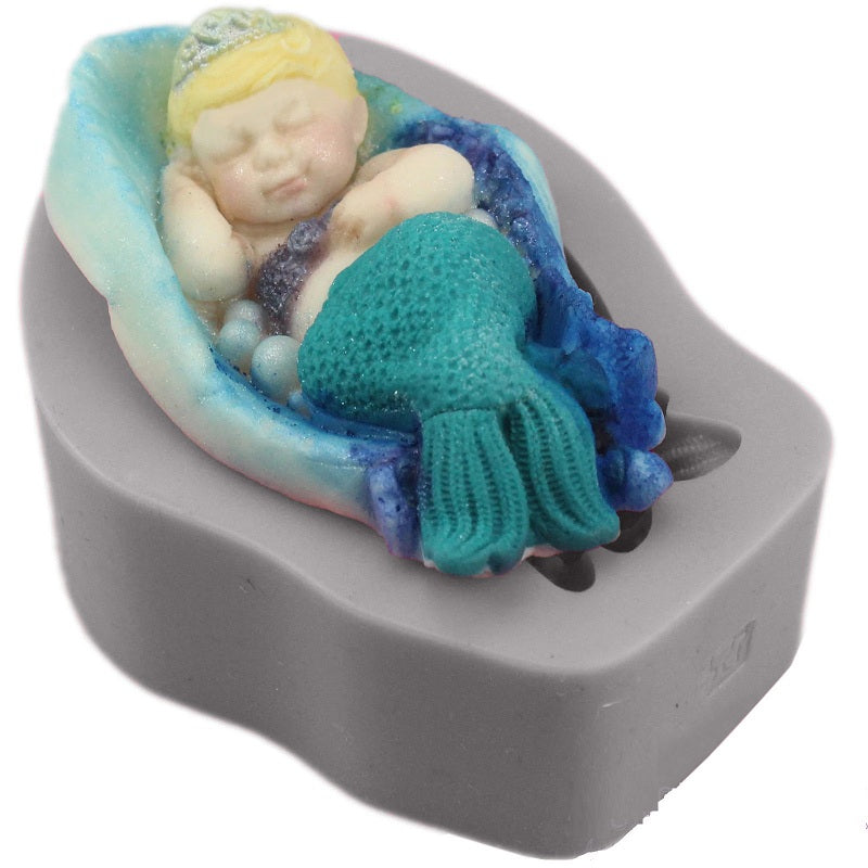 Sleeping Mermaid Baby Silicone Fondant Mold Large
