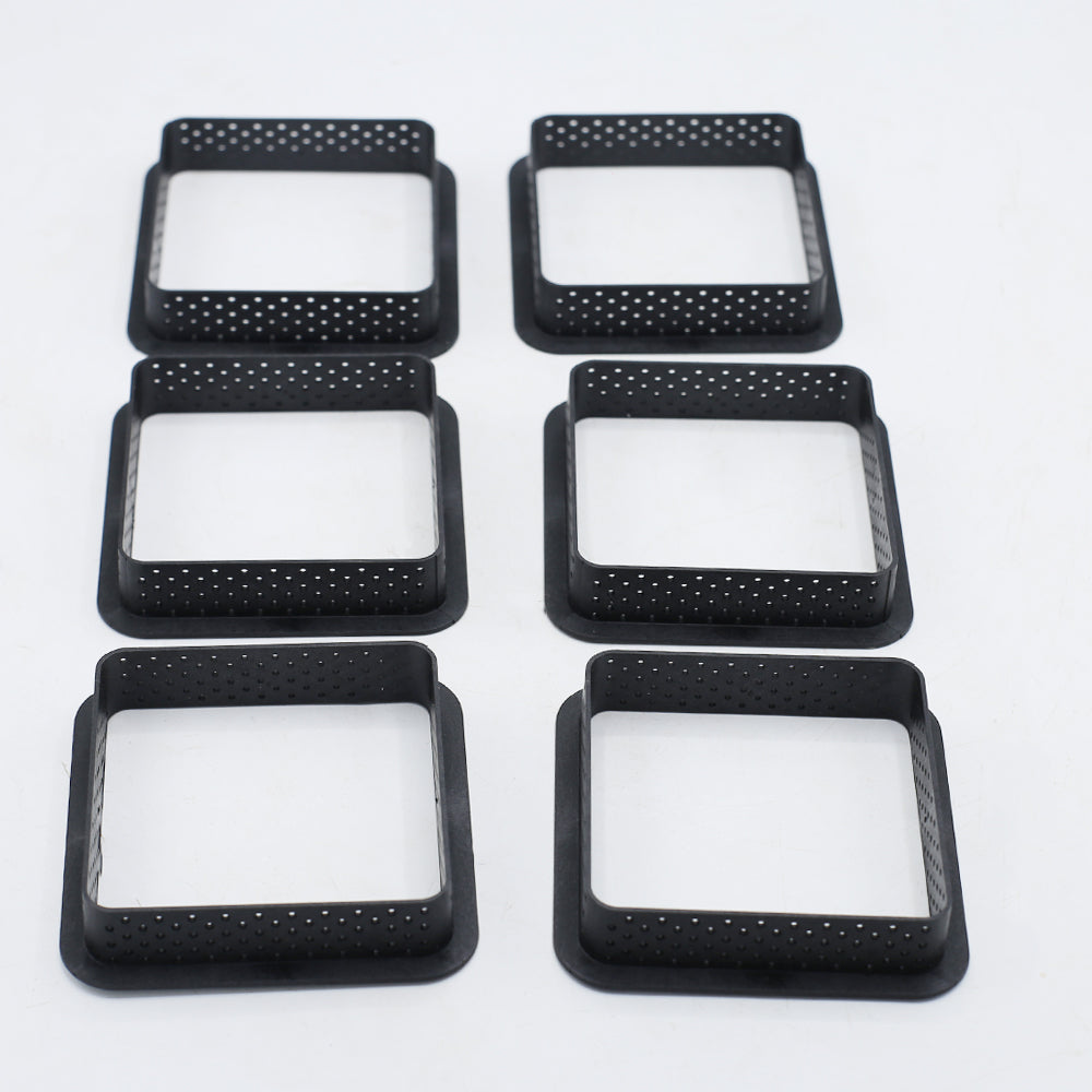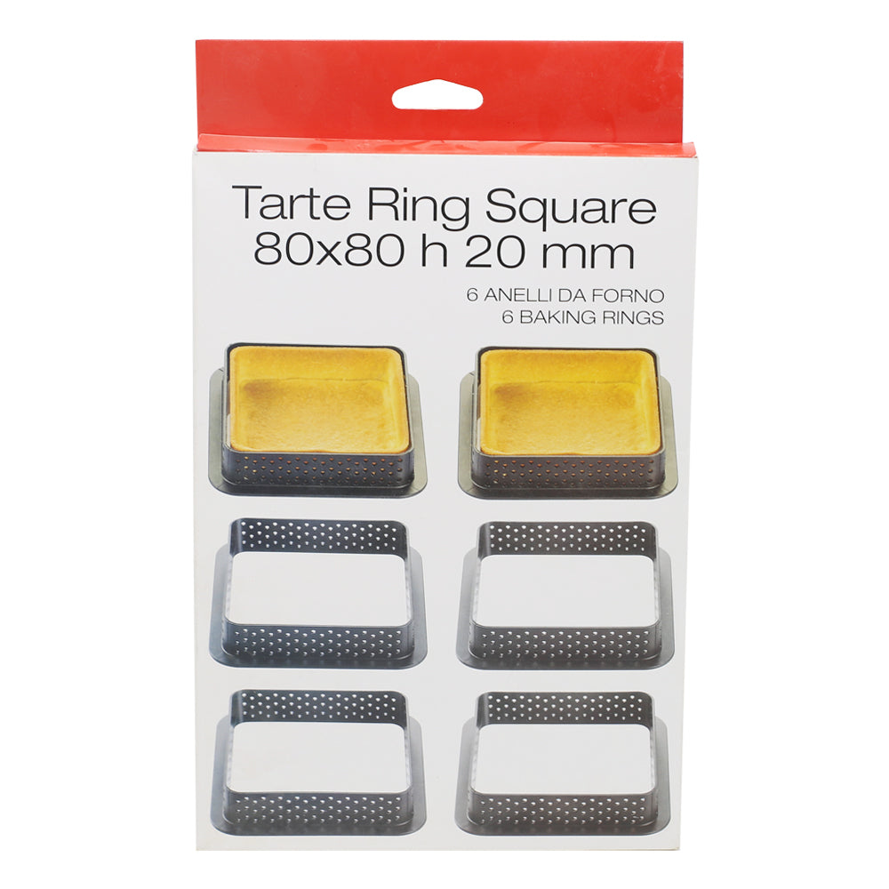 This square tart ring set includes 6 plastic pieces, perfect for shaping tarts, pies, and mini desserts with clean edges. Lightweight and easy to use, the rings help create uniform and professional-looking treats. Durable and reusable, they are ideal for home baking, parties, and special occasions.