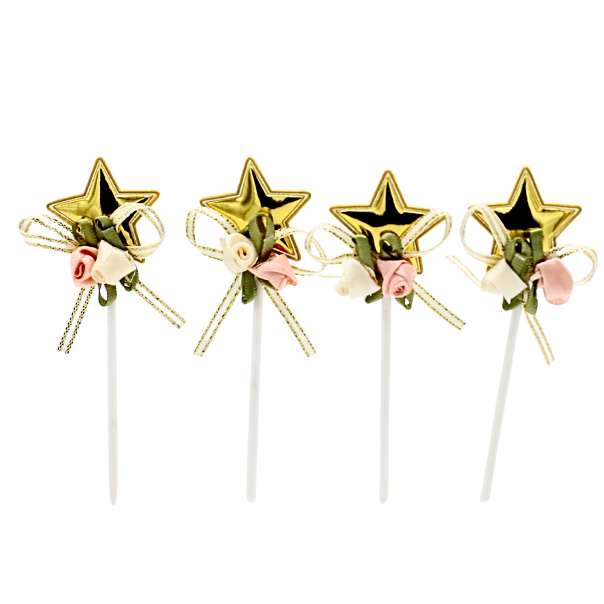 This star cake topper set includes 4 golden pieces, perfect for adding sparkle and charm to cakes and desserts. With their shiny golden finish, they bring a festive and elegant touch to birthdays, weddings, and special celebrations. Lightweight and reusable, they make any dessert table shine brightly.