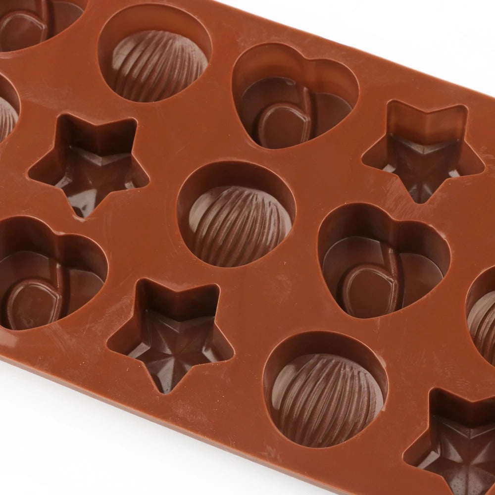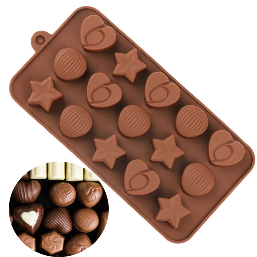 Star Heart Nut Shape Silicone Chocolate Mold 15 Cavity